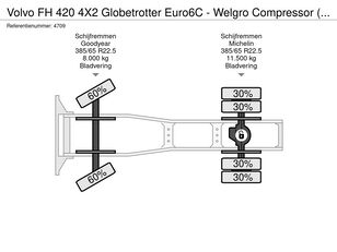 Volvo FH 420 4X2 Globetrotter Euro6C - Welgro Compressor (3487 hours) truck tractor
